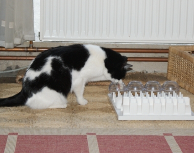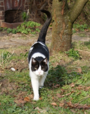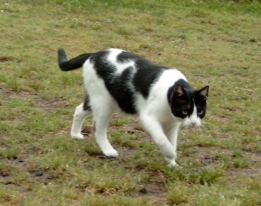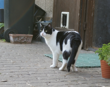 Ein Blick in die Transportboxen reichte, um zu bemerken, daß statt Feline Felice eingefangen worden war, auch eine Kuhkatze, aber mit einer runde Blesse statt einer spitzen. Natürlich durfte sie bleiben und ich schlappte am nächsten Tag los, um Feline zu holen ;-).