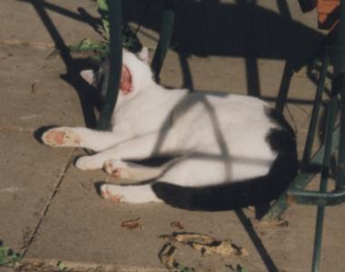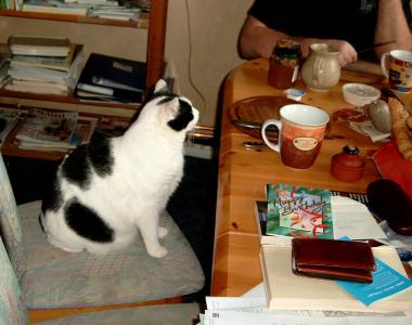 ine war nach Teddys Tod lange Zeit unser einziger Sonnenschein und demzufolge hoffnungslos verwöhnt. Katzenfutter wurde so gut wie nicht mehr angerührt, Maus oder Rind (nur ersteres selbst gefangen) waren angesagt. Als absoluter Beherrscherin des Hauses mitsamt der Bewohner war nach ihrem Empfinden alles in Butter. Bastet hätte ihre Freude daran! Endlich wieder eine Katze, die den Menschen auf seinen natürlichen Platz verweist, als Dosenöffner und Kraulstation, ach ja, und Katzenklappenaufmacher morgens um fünf. |