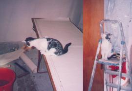 W uz überwachte gewissenhaft alle Bauarbeiten und war sich nicht zu schade, selbst Pfote anzulegen, wenn etwas gegen ihr ästhetisches Empfinden sprach. Wo immer auch gebohrt, geschraubt oder tapeziert wurde, stets hatte sie ein gutes Wort für ihre Dosenöffner und sparte nicht mit guten Ratschlägen.