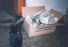 D ie ersten beiden Samtpfoten, die schöne, gestromte Wilhelmine und die freche und äußerst neugierige Wuzeline, genannt Willi und Wuz, zogen 1998 bei uns ein. Als Wurfschwestern fanden sie sich auf der Baustelle, die unser Haus war, prima zurecht und bestanden in der nur Katzen eigene Art darauf, daß der Einbau von Katzenklappen von draußen bis zum Dachboden unbedingt wichtiger ist als z.B. eine Heizung...