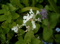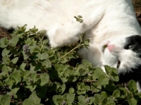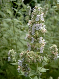 .cataria, die große Schwester, wirkt im Wachstum sehr wie eine Brennessel. Sie wird ca. 1 m hoch und neigt zum auseinanderfallen. Ihre Blätter sind aber samtzart und die kleinen Blütentrauben allerliebst. Sie hat heilkräftige Wirkung: Die blühenden Sproßspitzen werden als Tee gegen Husten und Durchfall bereitet. Gerauchte Katzenminze soll psychoaktiv wirksam sein. Von unserer Katzenbande wird faassenii eher im frischen Zustand, cataria getrocknet begeistert angenommen. |