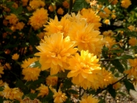 erria japonica, der Ranunkelstrauch, gehört zu den rosaceae, den Rosenartigen. Ursprünglich aus China stammend, in Japan kultiviert, ist er in den letzten Jahren auch in Europa stark auf dem Vormarsch. Das liegt wohl auch an seiner Ausbreitungsfreude, die der eines Bambus nur wenig nachsteht. In den hiesigen Gärten ist fast nur die gefüllte Art, pleniflora, zu bewundern. Es gibt aber auch eine ungefüllte Sorte, nach der ich noch auf der Jagd bin. |
