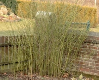 uch wenn der Ranunkelstrauch mit der Blüte erst im April/Mai protzt und mitunter noch einen etwas kleineren "Gelbregen" im Herbst nachschiebt, ist doch das leuchtend grüne Holz auch in Winter ein netter Farbkleck in unserer meist grau-in-braunen Landschaft. Jetzt ist auch der richtige Zeitpunkt, ihn in seine Schranken zu weisen (sprich: dort abstechen, wo er nicht hin soll) und zurückzuschneiden. |