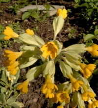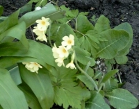 ine nahe Verwandte der duftenden Schlüsselblume ist P. elatior, die hohe Schlüsselblume. Sie blüht ca. 2 Wochen früher als P.veris, aber in einem gedeckteren Gelb. Sie ist eher im Wald als auf Wiesen zu finden. Auch sie steht unter Naturschutz, aber wenn man im Garten genug davon hat, kann man aus den Wurzeln einen Aufguß machen, der bei Rheuma und Quetschungen helfen soll. Tee aus den Blüten (2-4 g auf eine Tasse kochendes Wasser) wirkt schleimlösend, beruhigend und entspannend. |
